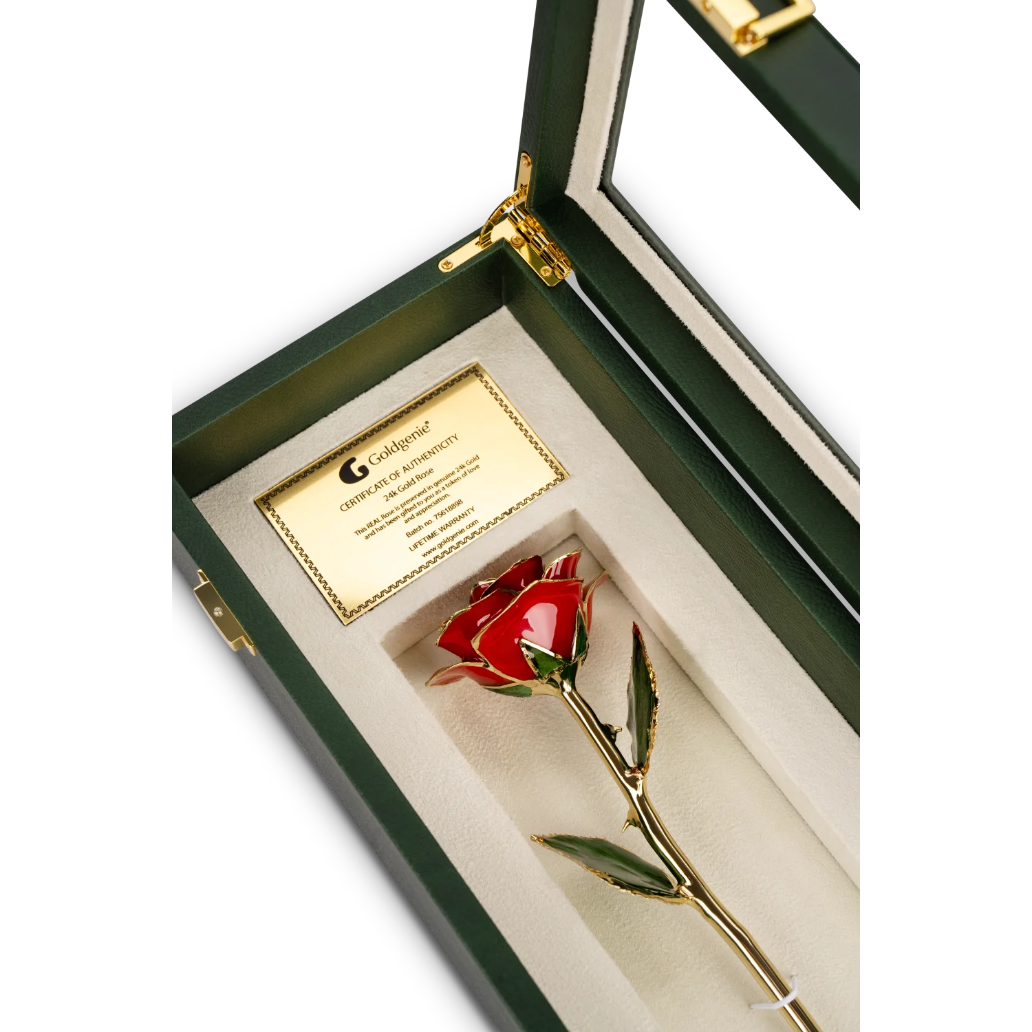 Far beyond the fleeting beauty of traditional bouquets, Goldgenie’s 24K gold roses embody a deeper symbolism where passion meets permanence. Each rose is carefully preserved and gilded in pure 24-karat gold, transforming a classic expression of love into an everlasting treasure.