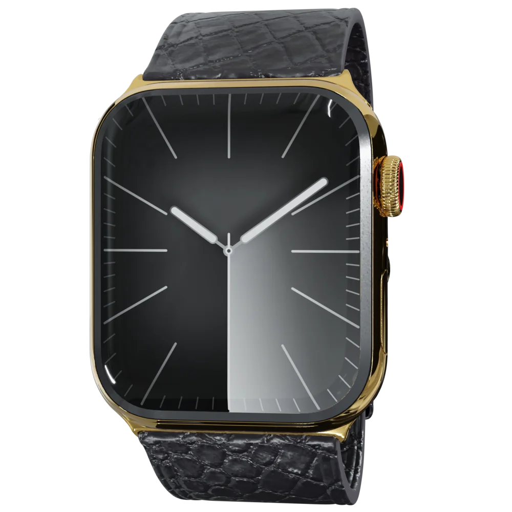 The Gold Apple Watch 10 with Black Python Strap is unlike no other. By syncing with your calendar, your notes, and your schedule. It understands your personal use of time and allows for seamless management of your life.