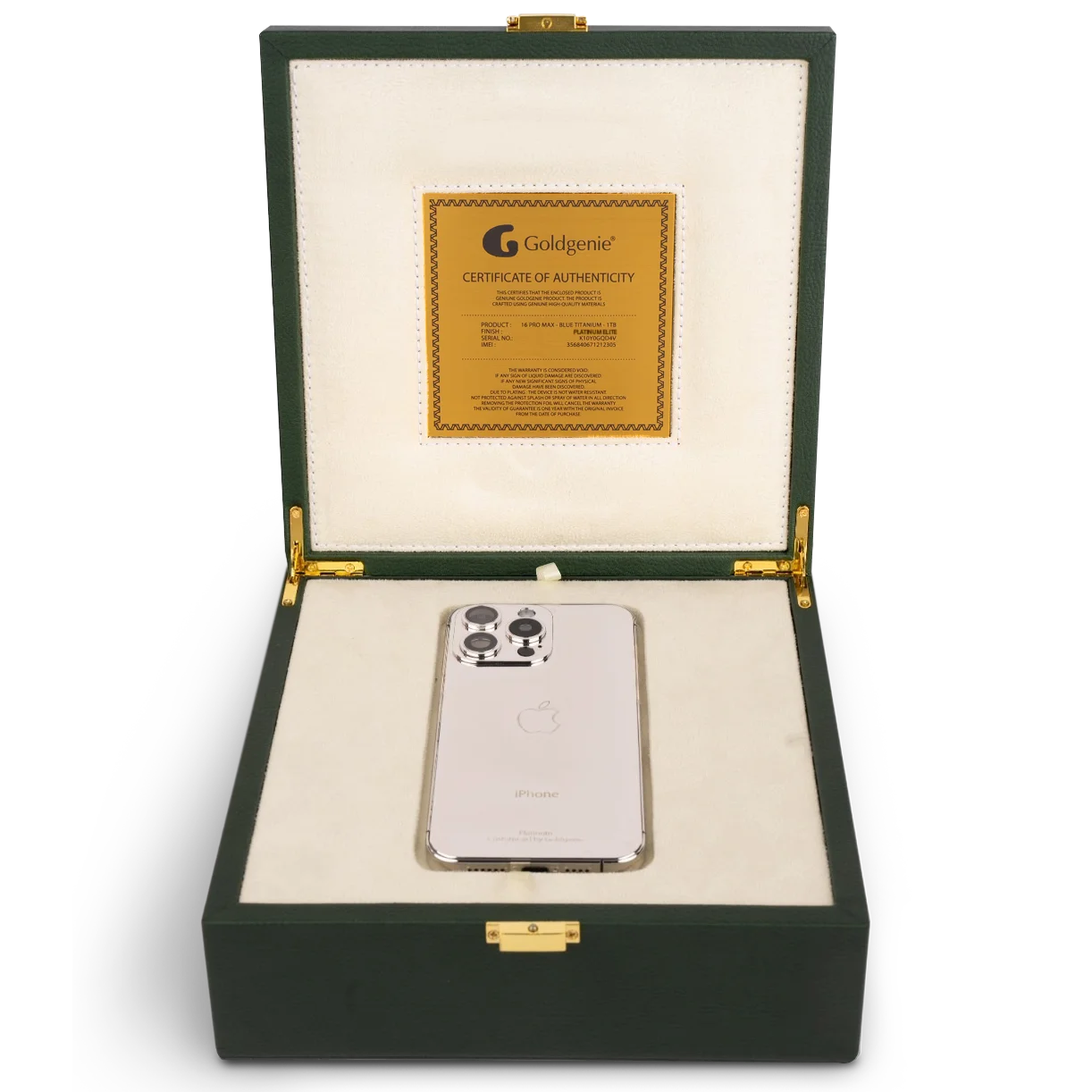 The sleek, reflective surface of platinum exudes elegance and timelessness, setting this iPhone apart from the standard models. The attention to detail and hand-finishing techniques used by Goldgenie artisans ensure that every iPhone in this limited edition series is both unique and flawless.