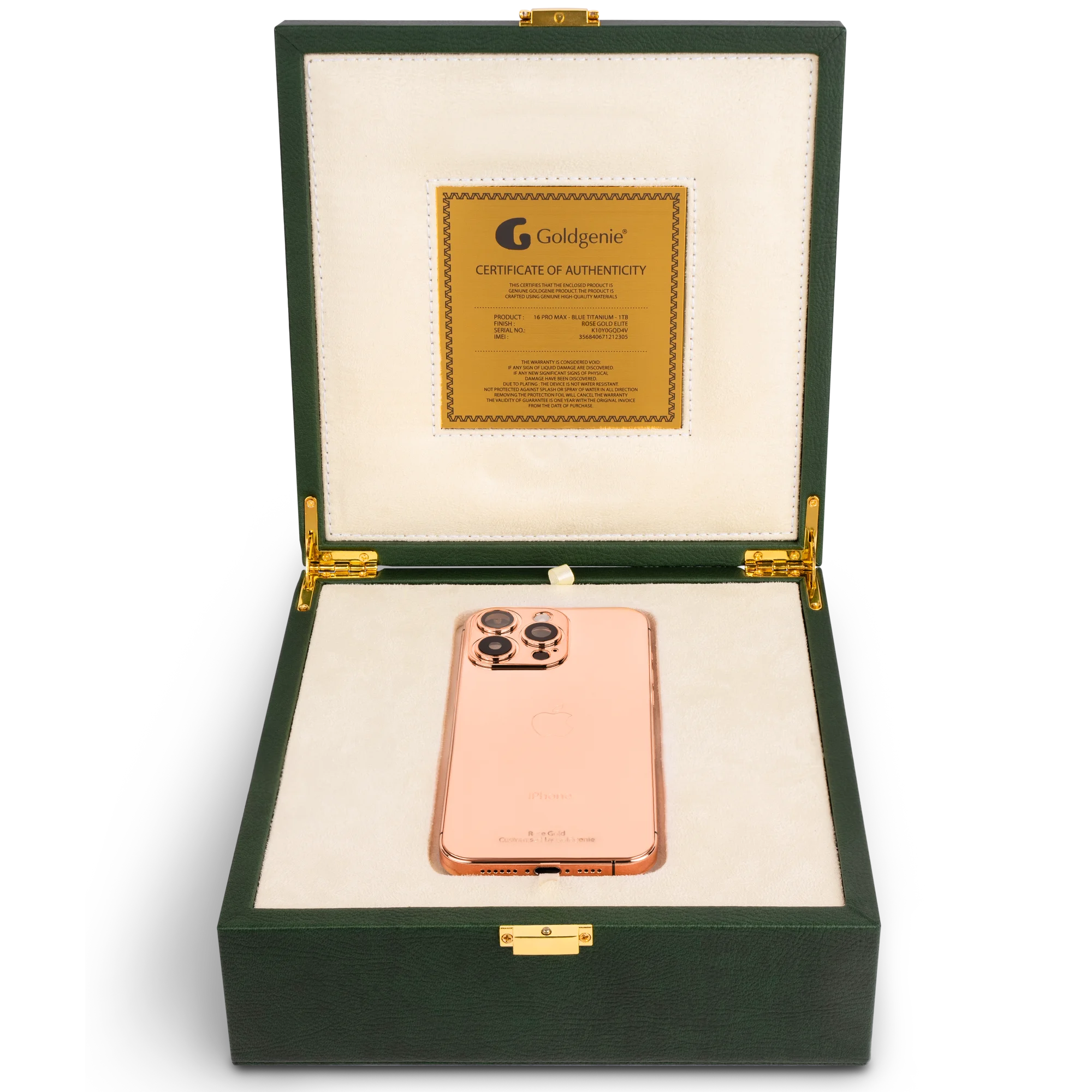 Goldgenie's artisans, renowned for their mastery in luxury customization, bring their finest skills to this limited edition series. The gentle blush of rose gold offers a unique blend of elegance and sophistication, appealing to those who seek both technological excellence and timeless beauty. Every iPhone in this collection stands as a symbol of personal refinement, carefully crafted to provide a bespoke experience for its owner.